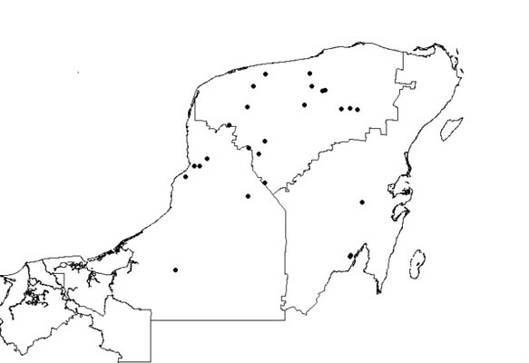 | Distribución en la Península de Yucatán: Ver mapa >> | |||||||||||||||||||||||||||||||||||||||