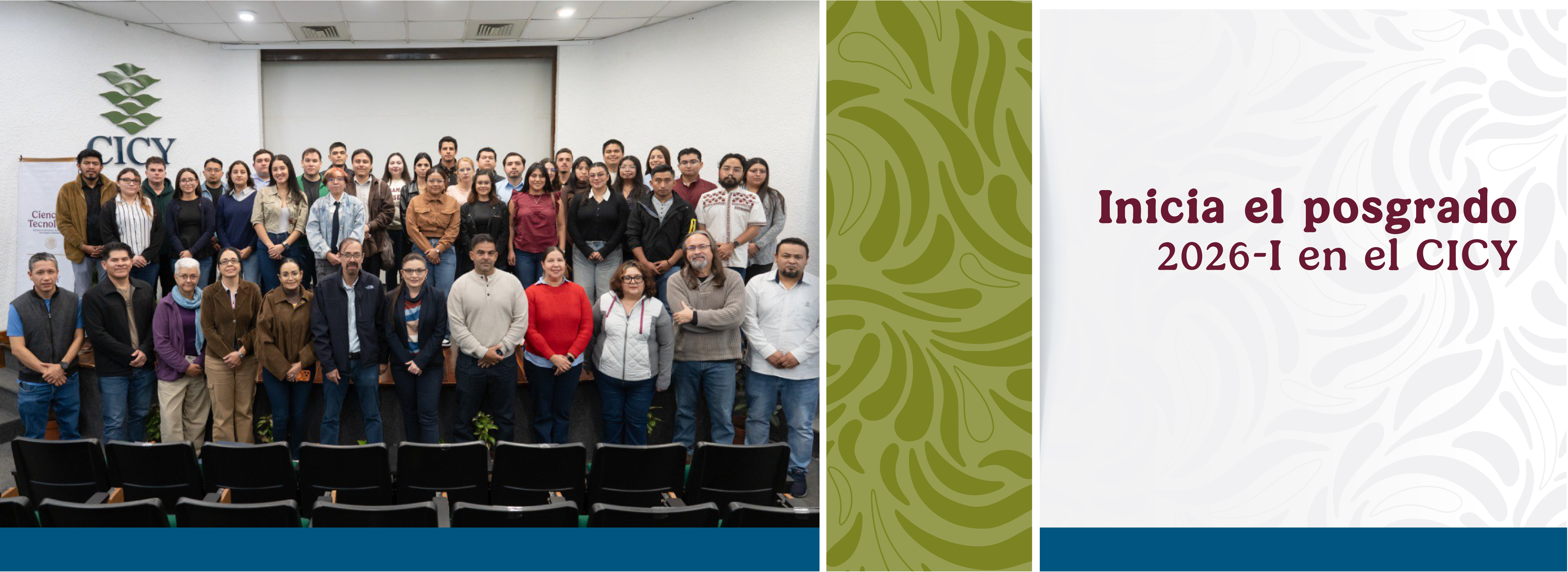 Mérida, Yucatán a 4 de febrero de 2026.- Con 42 nuevos estudiantes de posgrado, el Centro de Investigación Científica de Yucatán (CICY), inició el semestre 2026-I en sus siete programas: maestría en Ciencias del Agua; maestría y doctorado en Ciencias Biológicas, con opciones terminales en Bioquímica y Biología Molecular, Biotecnología y Recursos Naturales; doctorado en Ciencias en Energía Renovable, y maestría y doctorado en Materiales Poliméricos.
