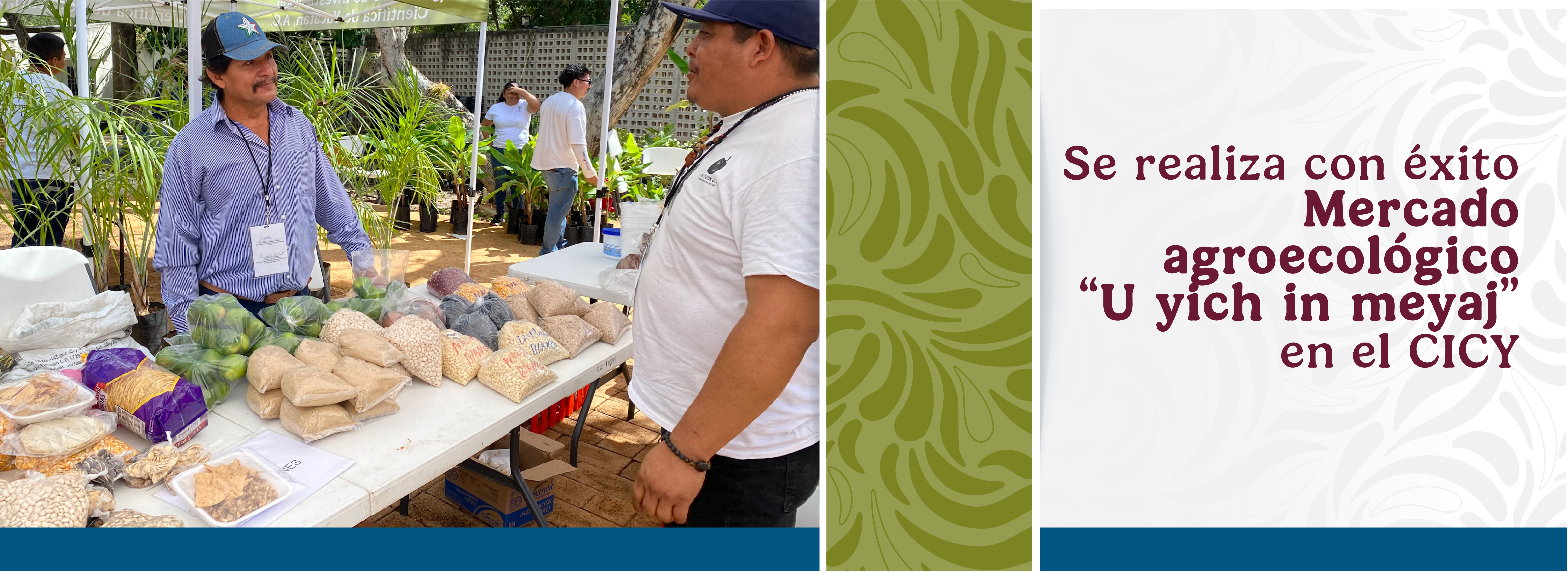 Mérida, Yucatán a 20 de marzo de 2026 — Con el fin de contribuir a la construcción de un circuito solidario de producción y consumo de productos locales, sanos y nutritivos, el Centro de Investigación Científica de Yucatán, A. C. (CICY), llevó a cabo la primera edición de 2026 del Mercado Agroecológico “U yich in meyaj” (el fruto de nuestro trabajo), en el que integrantes de 13 colectivos de personas productoras de Yucatán ofrecieron diversos productos elaborados localmente.